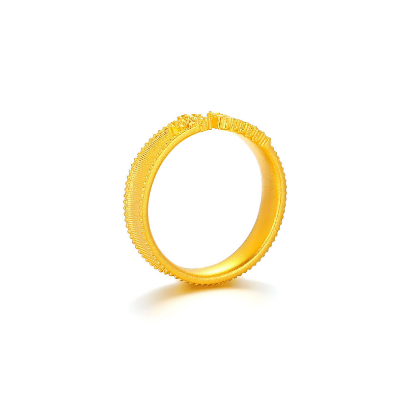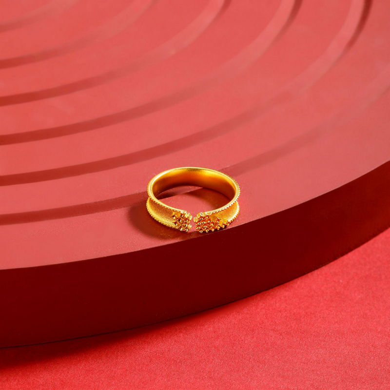 承古法金工打造哑光戒身 以仿钻点与钉珠点缀细节 金质的温润与纹理的精致交织 仿钻点折射细碎光泽 开口设计适配不同指围 简约造型适配日常佩戴 是兼具复古质感与时尚亮点的雅致指环