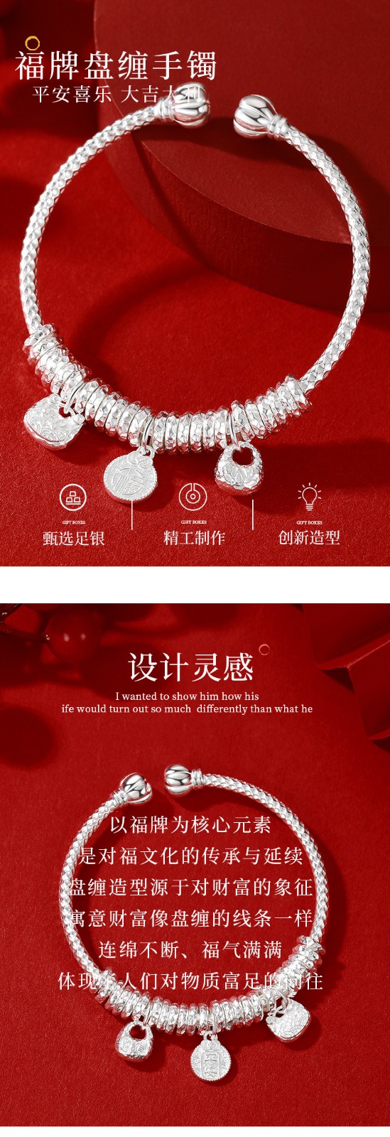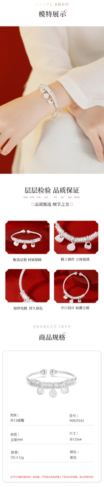 足银福牌盘缠手镯女高级感中国风气质百搭开口可调节999纯银手环90029181-YG