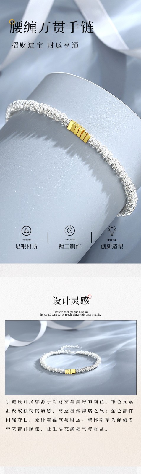 腰缠万贯纯银手链女碎银时尚百搭气质新年999足银高级感手饰批发90032327-YG