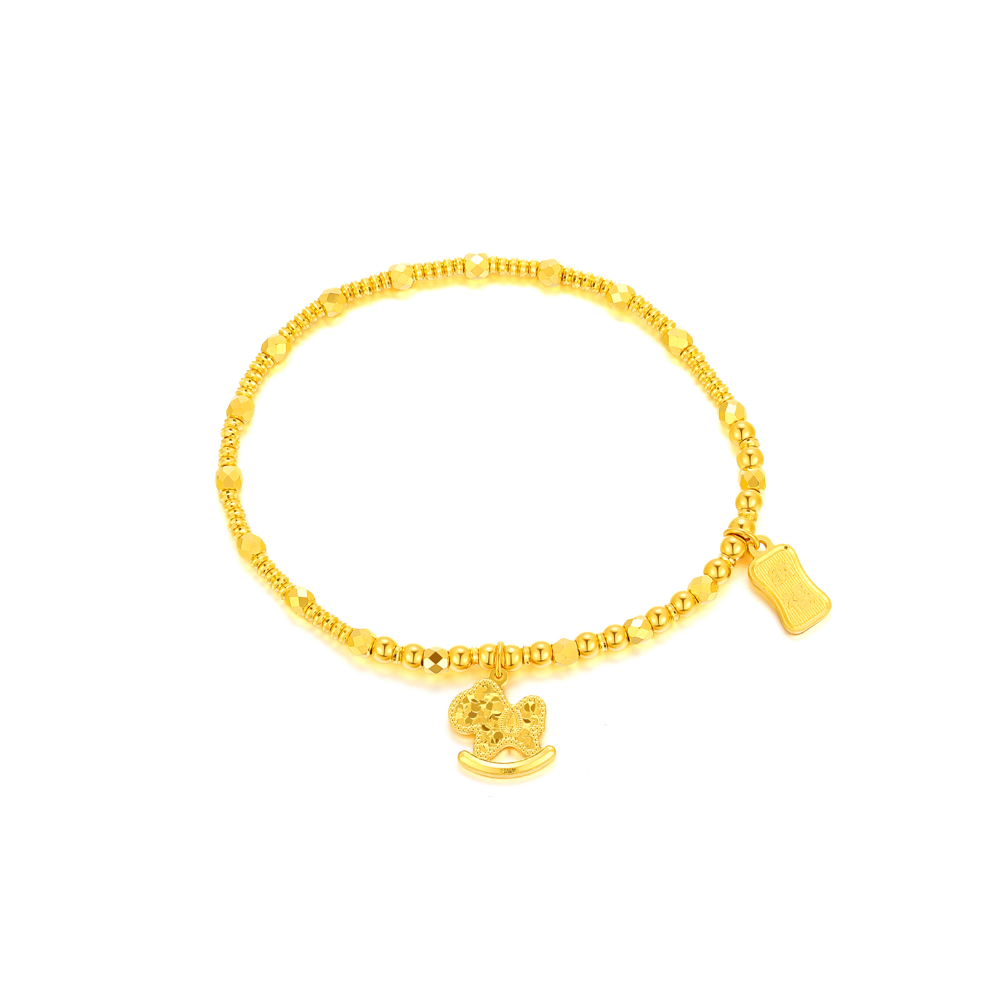 足金精品闪耀碎碎金护佑童趣小木马珠串手链 约6.7g